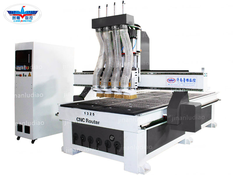 3圓盤式自動換刀系統、12支刀庫容量,換刀時間僅5秒。雙軌道雙軸傳動,屬重切削加工機型,每秒可加工25米。雙層吸附臺面搭配7.5KW水式真空泵,使氣壓分流更均勻,加工表面光滑,板材尺寸準確。整片板的加工無需再鋸切,線切割即可,不需制作模具。